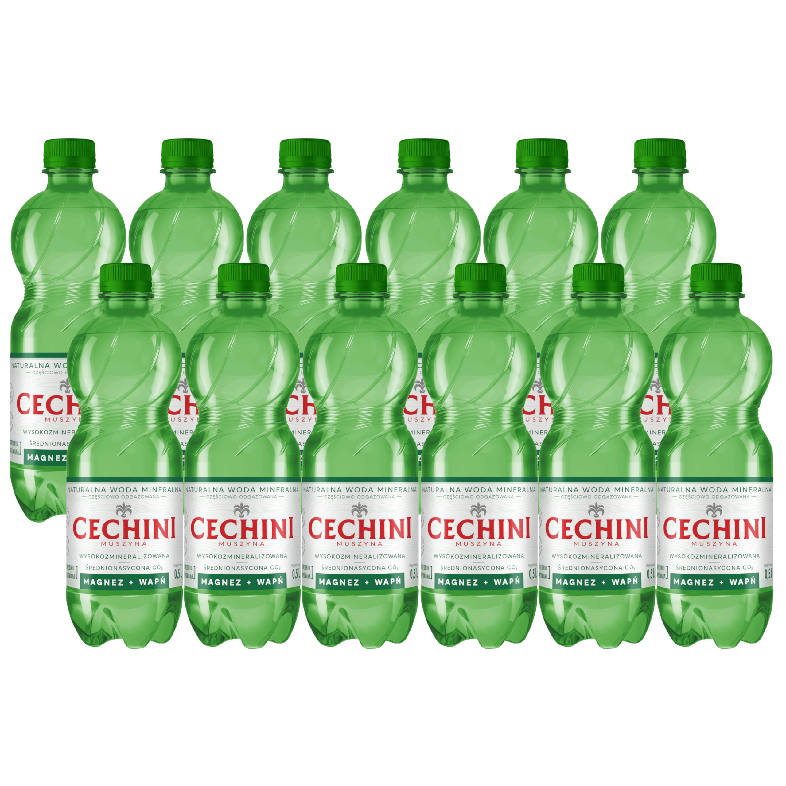 12x Woda średnionasycona CECHINI MUSZYNA wysokozmineralizowana 0,5l