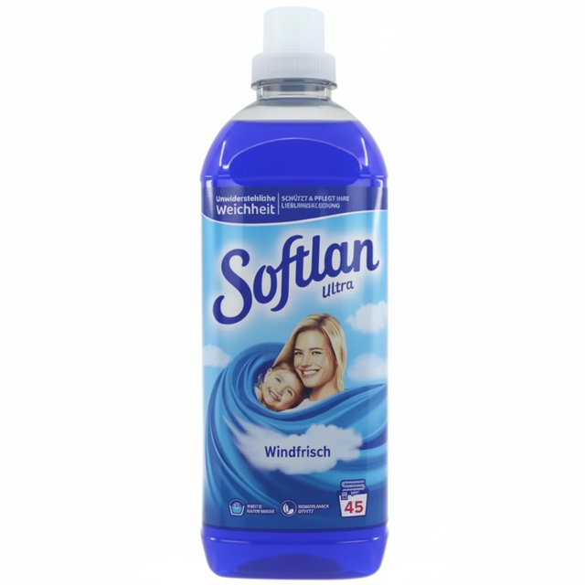 Softlan Windfrisch to bardzo skoncentrowany, niemiecki płyn o przyjemnym zapachu świeżego wiatru Na długi czas pozostawia na tkaninach wyjątkowy zapach, zawiera substancje pielęgnujące i zmiękczające, co powoduje, że przywraca tkaninom świeżość i naturalną miękkość.