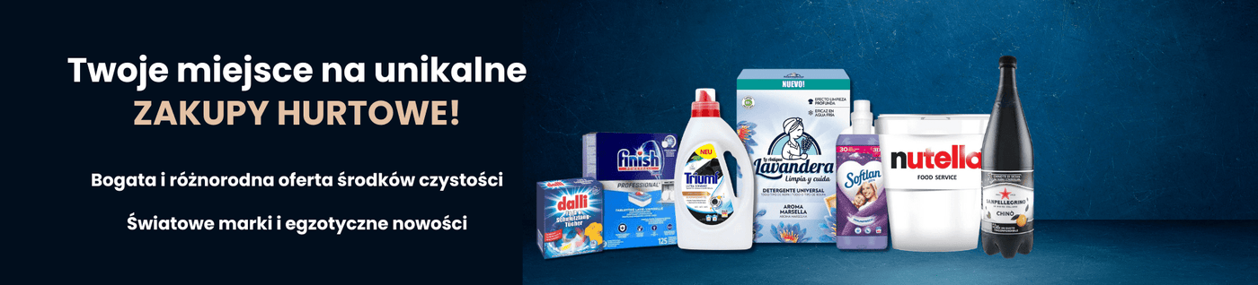 bd24.pl to profesjonalna hurtownia środków czystości, napojów i artykułów spożywczych, która od ponad 30 lat wspiera sklepy, hurtownie, hotele i restauracje w Polsce i całej Europie. Oferujemy szeroki wybór produktów FMCG w konkurencyjnych cenach hurtowych – od chemii gospodarczej i profesjonalnej, przez wodę i napoje gazowane, po kawy, herbaty i przekąski.